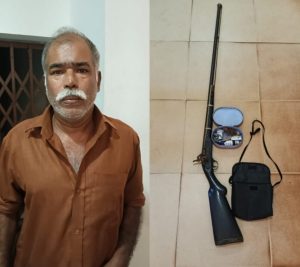ഇടുക്കി.ലൈസൻസില്ലാതെ നാടൻ തോക്കും വെടിക്കോപ്പും സൂക്ഷിച്ചതിന് മുളകുവള്ളി സ്വദേശിയെ പോലീസ് അറസ്റ്റ് ചെയ്തു.ബുധനാഴ്ച ഉച്ചയ്ക്ക് മുളകുവള്ളിയിൽ രഹസ്യവിവരത്തെത്തുടർന്ന് നിന്ന് പ്രതിയായ കാരക്കുന്നേൽ ജോർജിന്റെ (65) വീട്ടിൽ നടത്തിയ...