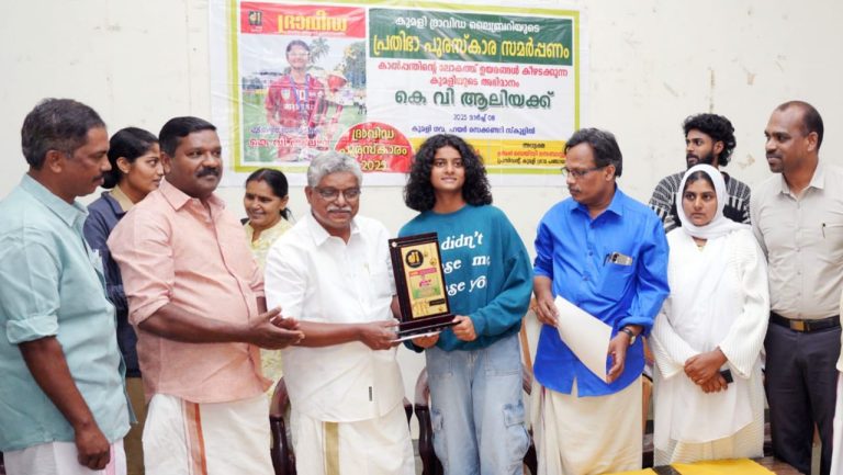 കുമളി: ദ്രാവിഡ ലൈബ്രറിയുടെ പ്രഥമ പ്രതിഭ പുരസ്കാരം ഫുട് ബാളിൽ ഉയരങ്ങൾ കീഴടക്കിയ കുമളി സ്വദേശിനി ഏഴാം ക്ലാസ് വിദ്യാർഥിനി കെ.വി ആലിയക്ക് കൈമാറി. കുമളി സർക്കാർ...