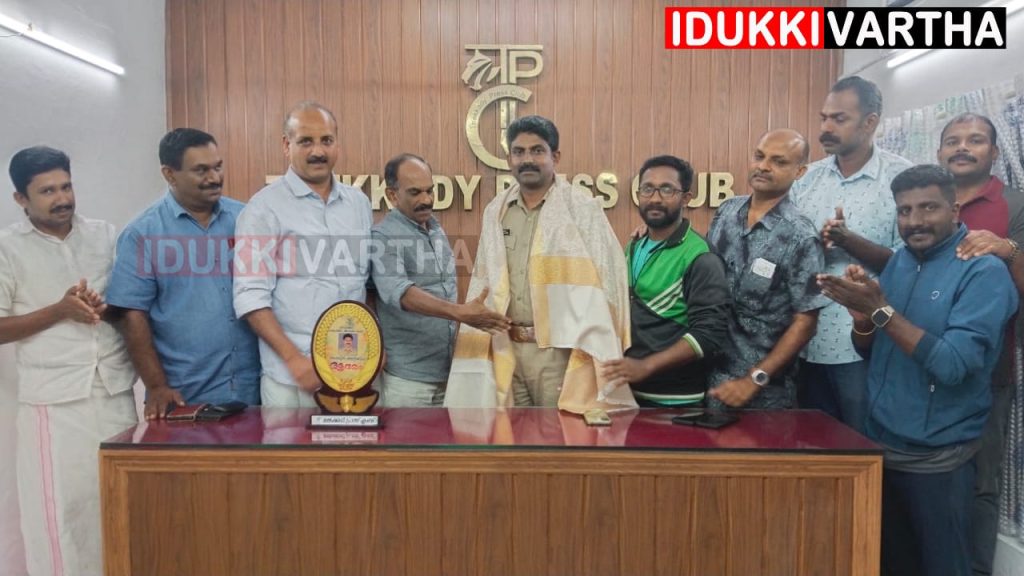 കുമളി എസ്.എച്ച്.ഒ ജോബിൻ ആൻ്റണിക്ക് തേക്കടി പ്രസ് ക്ലബ് ആദരവ് നല്കി.