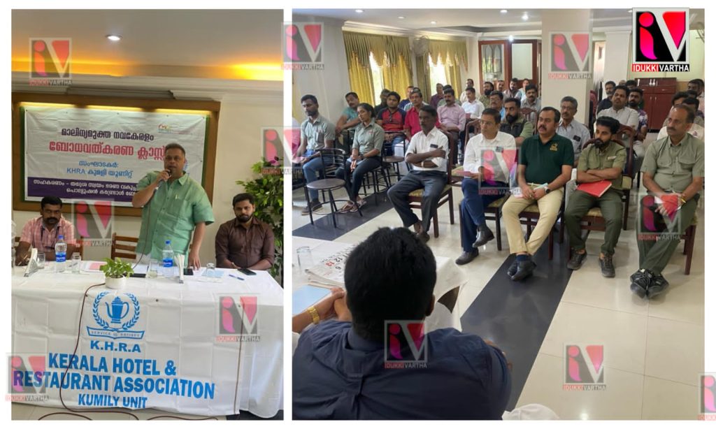 കേരള ഹോട്ടൽ ആൻഡ് റെസ്റ്റോറൻ്റ് അസോസിയേഷൻ്റെ നേതൃത്വത്തിൽ തേക്കടിയിൽ ബോധവൽക്കരണ ക്ലാസ് സംഘടിപ്പിച്ചു.