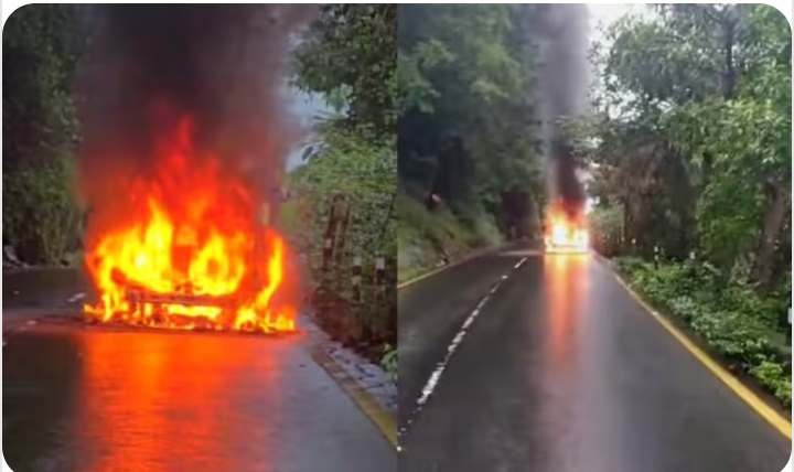 താമരശ്ശേരി ചുരത്തിൽ ഓടുന്ന കാറിന് തീപിടിച്ചു അപകടം