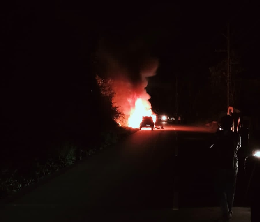 കുമളി:രാത്രി 8 മണിയോടെയാണ് സംഭവം നടക്കുന്നത് കുമളിക്ക് വരികയായിരുന്ന കാറിനാണ് തീപിടിച്ചത്.66 സമീപം ഇറക്കത്തിൽ കാറിൻറെ മുൻഭാഗത്തുനിന്നും പുക ഉയരുന്നത് കാണുകയും വണ്ടി നിർത്തുകയും ചെയ്യുകയായിരുന്നു. ഇത് വഴി വന്ന മറ്റ് വാഹനത്തിലെത്തിയ യാത്രക്കാർ ഉടൻ തന്നെ കാറിനടുത്തെത്തി ചില്ല് പൊട്ടിച്ച് ഇയാളെ പുറത്തിറക്കാൻ ശ്രമിക്കുന്നതിനിടയിൽ തീ ആളി കത്തുകയായിരുന്നു. തുടർന്ന് വാഹനം ഉരുണ്ട് നീങ്ങി താഴെ പാർക്ക് ചെയ്തിരുന്ന ബൈക്കിടിച്ച് നിൽക്കുകയും ചെയ്തു. സംഭവത്തിൽ കാറിനൊപ്പം ബൈക്കും കത്തി നശിച്ചു. സംഭവം അറിഞ്ഞെത്തിയ നാട്ടുകാരും കുമളി പോലീസും ചേർന്ന് തീ നിയന്ത്രണ വിധേയമാക്കിയത്.സംഭവത്തിൽ കാറിലുണ്ടായിരുന്ന ആൾ മിരിച്ചു. മരിച്ച വ്യക്തി ആരാണെന്ന് ഇനിയും വ്യക്തമായിട്ടില്ല. മൃതദേഹം പീരുമേട് താലൂക്ക് ആശുപത്രിയിലേക്ക് മാറ്റിയിരിക്കുകയാണ്.