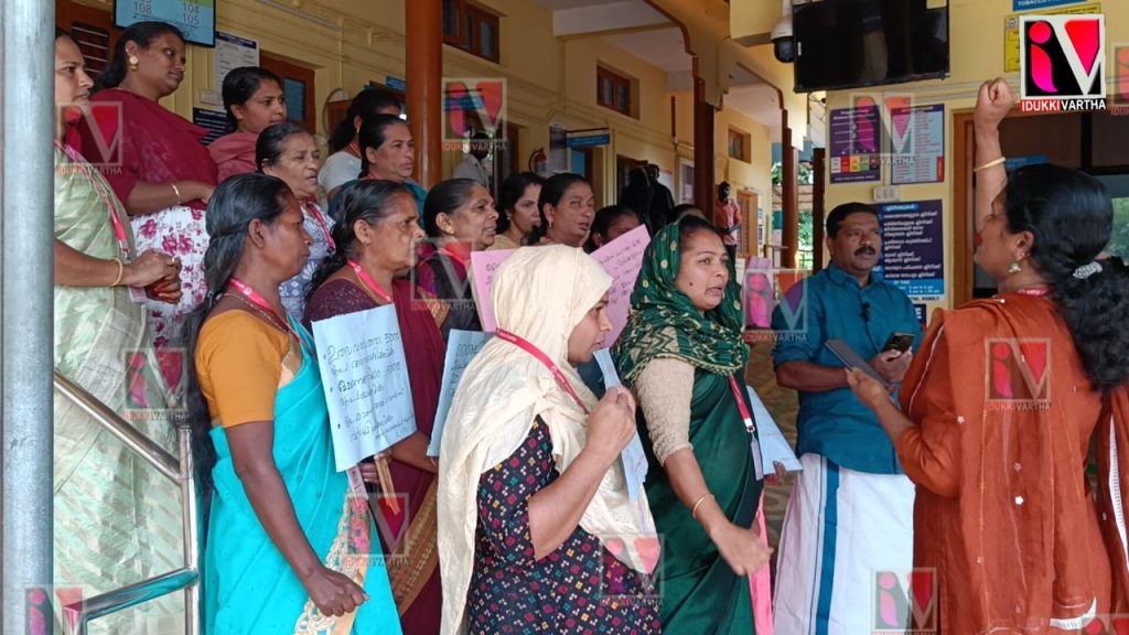 ആശ വർക്കേഴ്സ് യൂണിയൻ സി. ഐ.റ്റി.യു കുമളി പഞ്ചായത്ത് കമ്മറ്റിയുടെ നേതൃത്വത്തിൽ കുമളി സർക്കാർ ആശുപത്രിക്ക് മുൻപിൽ പ്രതിഷേധ ധരണ സംഘടിപ്പിച്ചത്.
