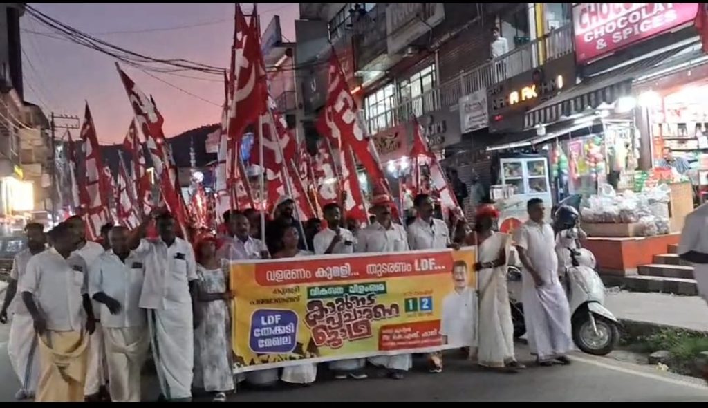 കുമളിയിൽ എൽഡിഎഫ് വികസന വിളംബര ജാഥകൾ സമാപിച്ചു: ഇ.എസ്. ബിജിമോൾ ഉദ്ഘാടനം ചെയ്തു.