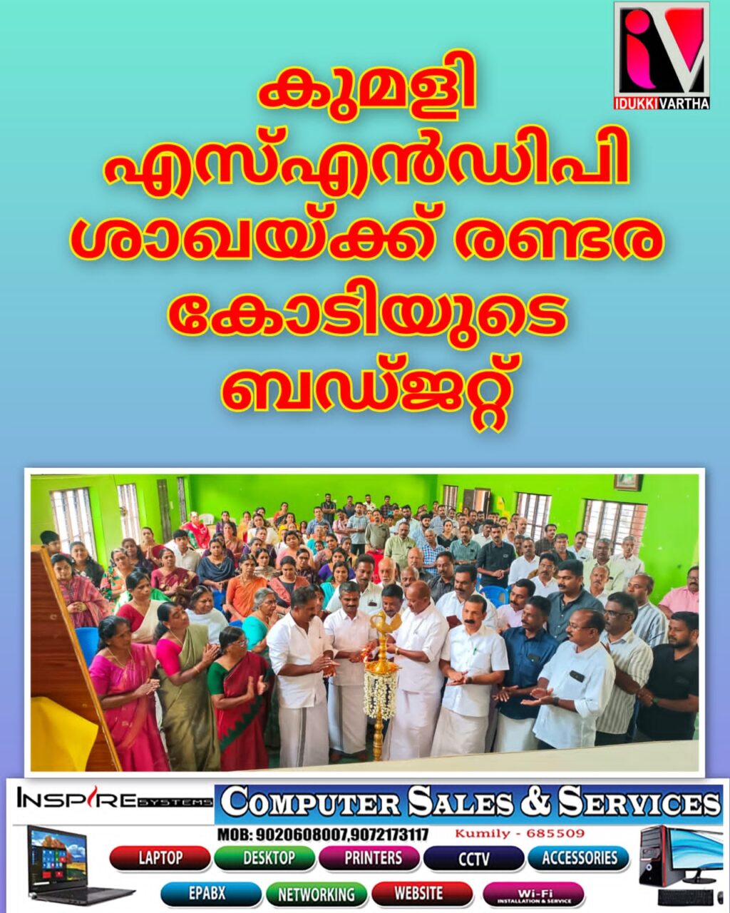 കുമളി എസ്എൻഡിപി ശാഖയ്ക്ക് രണ്ടര കോടിയുടെ ബഡ്ജറ്റ്
