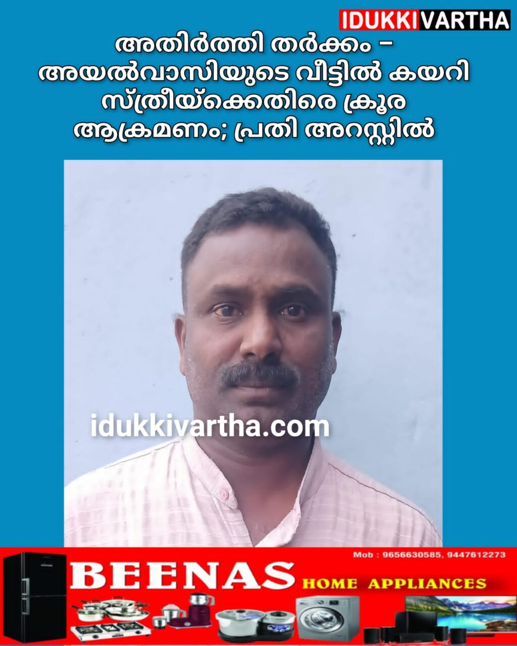 അതിർത്തി തർക്കം – അയൽവാസിയുടെ വീട്ടിൽ കയറി സ്ത്രീയ്ക്കെതിരെ ക്രൂര ആക്രമണം; പ്രതി അറസ്റ്റിൽ